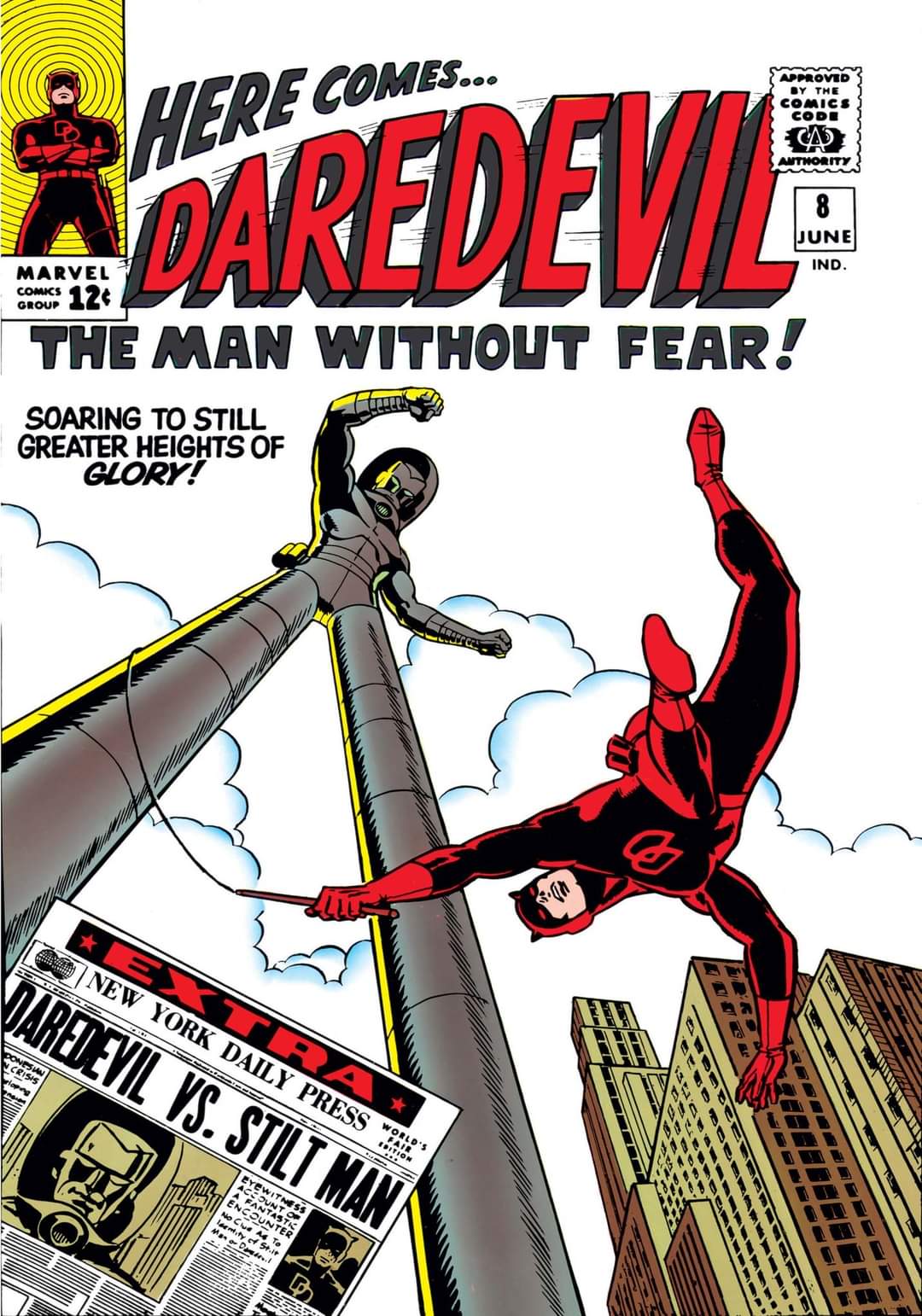 Daredevil’s eighth issue features the first appearance of Stiltman. To contend with the mechanical villain, Daredevil’s arsenal gets an upgrade, and conveniently enough, this issue seems to introduce the Microverse/Quantum realm into Daredevil’s purview just in time for the cinematic release of Ant-Man and the Wasp: Quantumania.