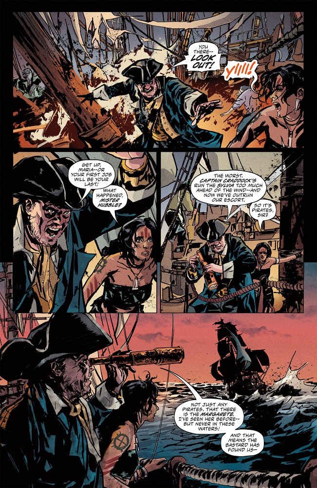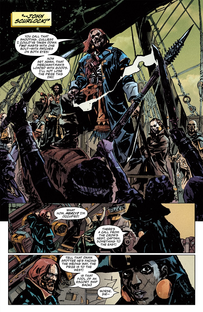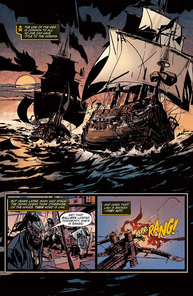 So, pirates, treasure, swash and buckle, this series has it all, and it’s a really enjoyable romp. The fact that this is a console game tie-in was a complete surprise to me. In all honesty movie and game tie-ins are tricky waters to navigate (no pun intended), and it’s very difficult to get it right, so I’m a little nervous about the rest of the run. To be fair though, my first read through of this issue was without the knowledge that Ubisoft have a game coming out, and I very much enjoyed it. It reminded me a little of Ram V’s These Savage Shores, which of course means I’ve also just grabbed my copy off the shelf to read when I’m finished here.