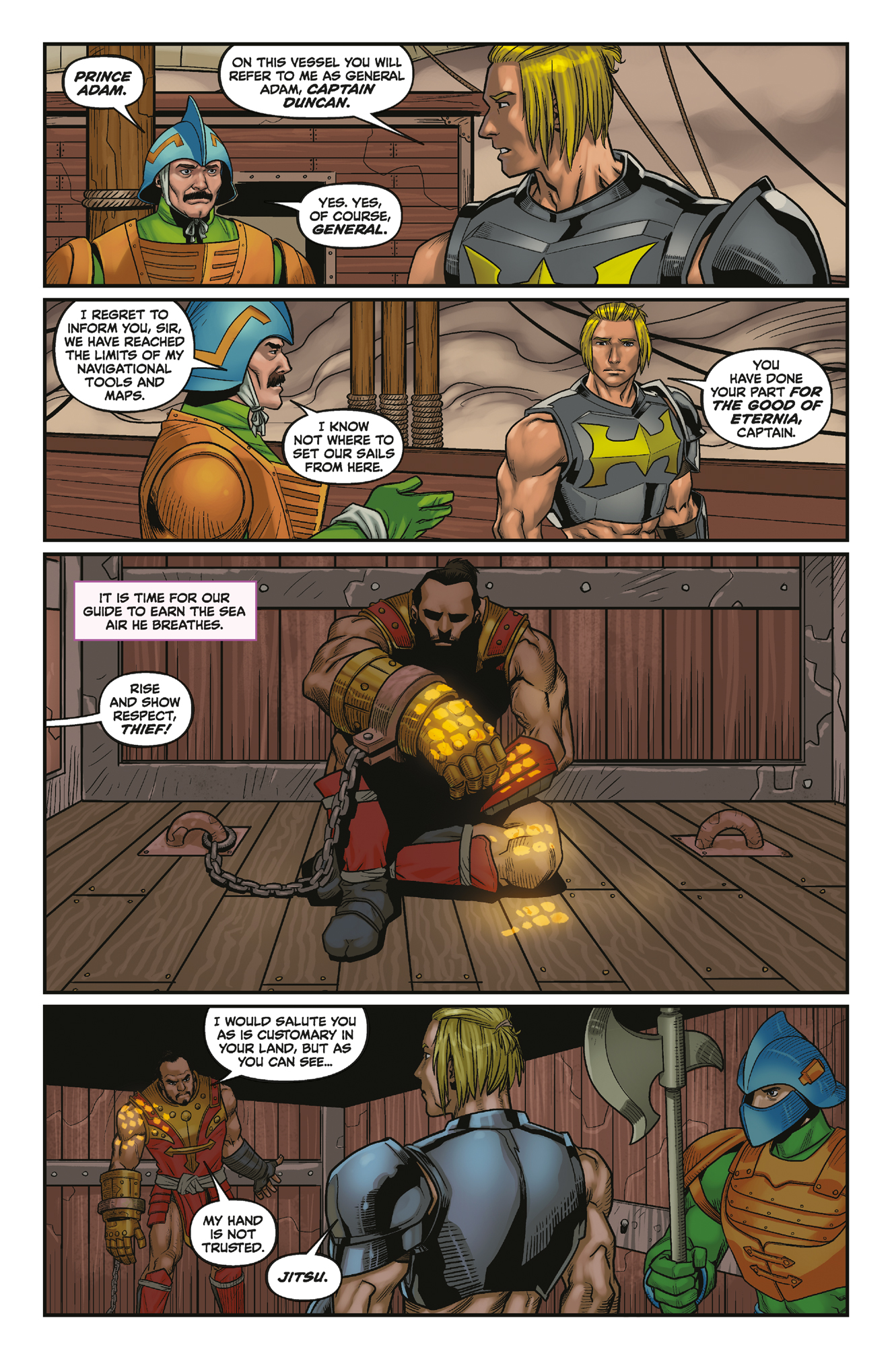 The first story, East of Eternos, sees E.J. Su illustrating the tale of a young Eternian General named Adam and his voyage across the uncharted seas in search of the mythical Isle of Grayskull and the legendary artifact known as “The Power Sword.” While it certainly serves as yet another testament to an Adam’s heroism and worthiness, it also provides a pretty damn compelling alternate origin story of Jitsu, broadly depicted as an “evil master of martial arts” previously, but portrayed here in a far more sympathetic, almost noble light. I’m a big fan of Su’s artwork from his impressive stint on IDW’s Transformers: Last Bot Standing, and he does a solid job here, particularly when it comes to Jitsu himself, who looks fantastic. His Prince Adam is perhaps a little inconsistent facially, but that feels like a minor niggle in what is a thoroughly enjoyable nine-page story.