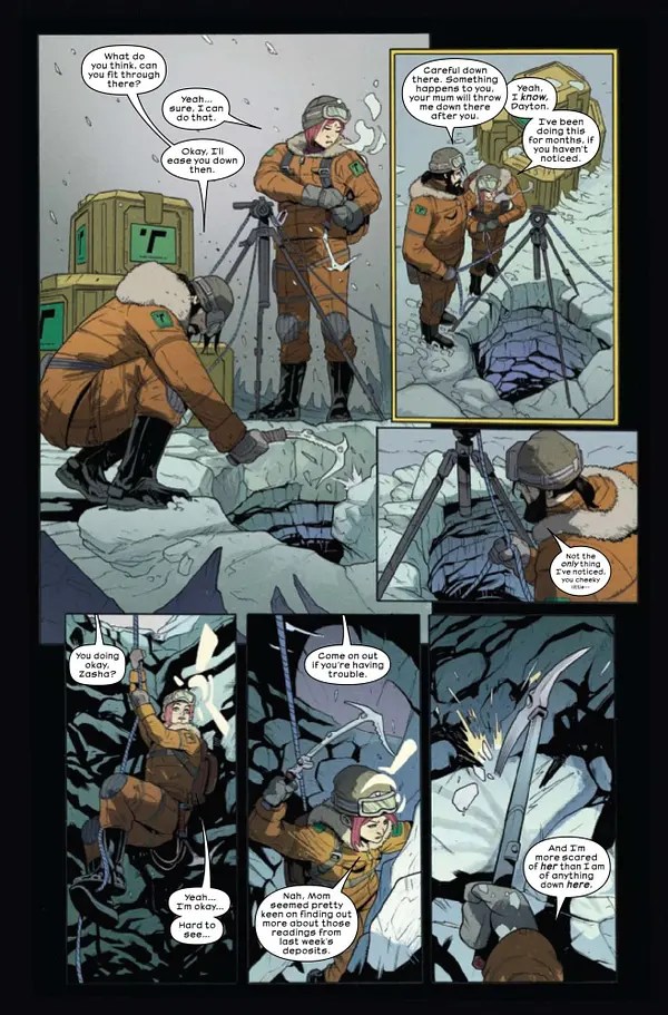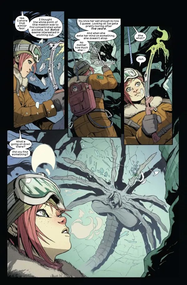 The final pages ratchet up the tension considerably as the ‘discovery’ starts to thaw and Zasha, Batya’s young daughter, finds herself on the run. It’s clear that all hell is about to break loose, and I’m definitely planning on sticking around to find out what happens next. Sure, there’s perhaps nothing too groundbreaking at play here yet, but there’s enough atmosphere and intrigue to keep the pages turning throughout the course of this first issue. A chilling new chapter in Marvel’s Alien saga, and a first issue that’s still well worth a look.