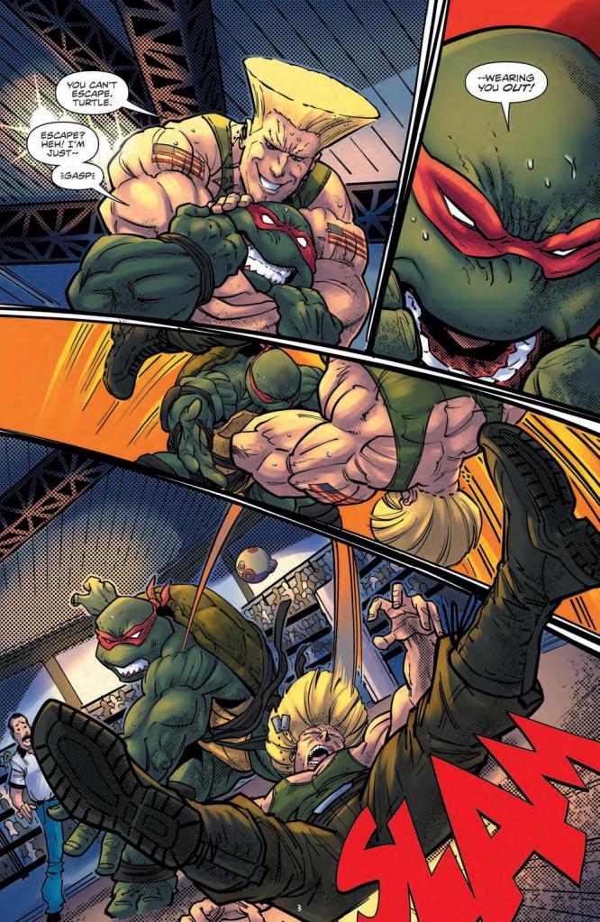 The setup here is a simple one (although perhaps a little too simple for my tastes), as “a prestigious martial arts tournament invites fighters to travel to Atlantic City and test their skills”, leading to the Turtles and a few of the better-known Street Fighters – Guile, Ryu, Ken and Chun-Li – throwing down in some fairly low-stakes bouts.