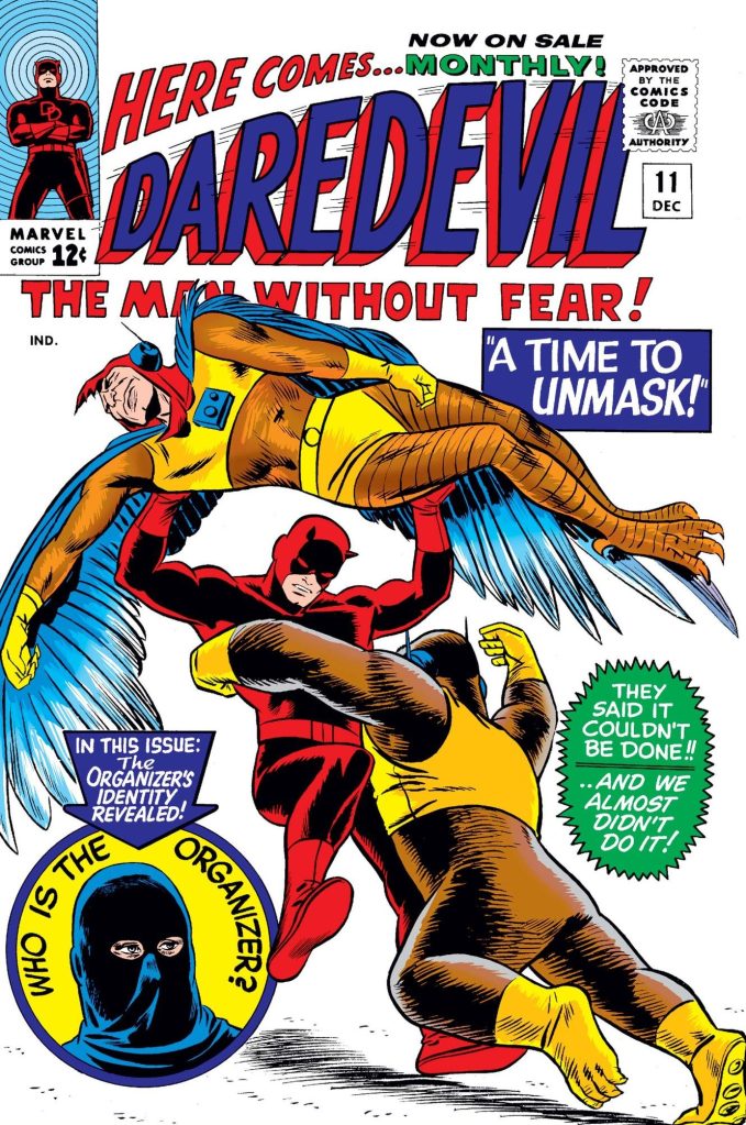 While Lee’s story is very straightforward, his characters still make illogical and frustrating conclusions. The Organizer’s ring was the clue Wood left in the last issue for readers to determine his identity. Daredevil points out that his radar sense picked up the ring, so one might think there was some mystery around the ring: was it a radio for the Organizer to coordinate attacks while out in the public eye? No. The linchpin to this mystery is the Organizer wears the same ring Abner Harris wears. Therefore, he’s the Organizer. That’s right, he’s outed because he forgot to take off his ring before the broadcast. There’s no discussion about whether the ring is a one of a kind or if there was some kind of marker or pattern to indicate the ring’s uniqueness. Not to mention Abner’s pathetic confession when confronted about the ring, “Blast it! I forgot!” – it reads like this were a Scooby Doo mystery. Abner doesn’t put up much of a fight as he’s hauled off to jail.