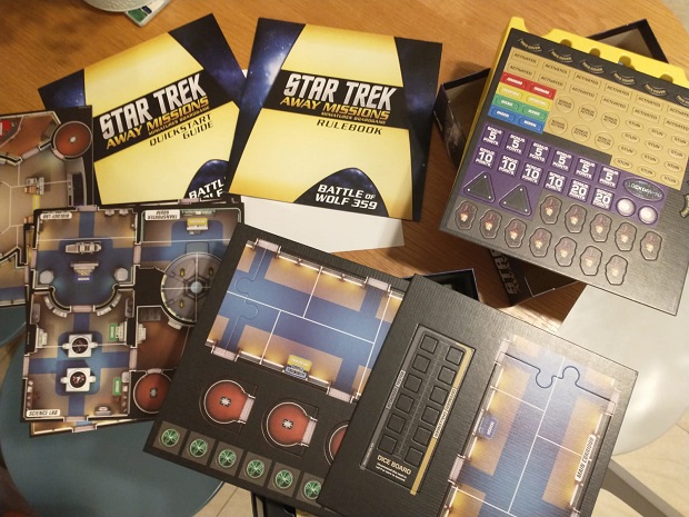The tokens are excellent (different shapes, very accessible), the modular ship tiles double-sided Federation / Borg Cube, and the cards evoke TNG and First Contact perfectly with their screenshots. It’s a brilliant twist on the dungeon crawl board game, and as a lifelong fan I’m bowled over by how evocative it is. The faction dice look great and the dice board, for lining up successes in opposed rule, is a lovely touch – not strictly necessary, but just speaks of a quality product; whilst there are many tokens and components, nothing feels unnecessary or cluttered.