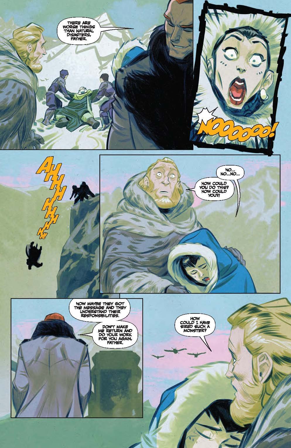 Perhaps therefore the sole success of this mini-series’ sixth instalment lies within the layouts of Fran Galan, whose consistently prodigious pencilling at least manages to gel everything together into a harmonious looking feast for the eyes. Galan is particularly good at depicting each figure’s emotions on their faces, with Leto’s angry and utterly exhausted looks at the ever-antagonistic mother of his child telling the audience everything it needs to know about his feelings for the infuriating woman.