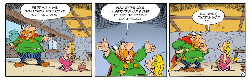 That said, the stakes are ramped up a little as Chieftain Vitalstatistix’ wife Impedimenta is kidnapped (sort of) and taken to Lutetia (Paris to you and me) after a wedge is well and truly driven between husband and wife by the slimy newcomer. The Chief is amusingly despondent, and even the prospect of swigging some potion and roughing up some Romans on his way to rescuing her can’t lift his spirits. I won’t go into too many details, but suffice to say all’s well that ends well, and we get a particularly satisfying finale that proves that all the positive thinking and mindfulness in the world can’t change the spots of these particular leopards.