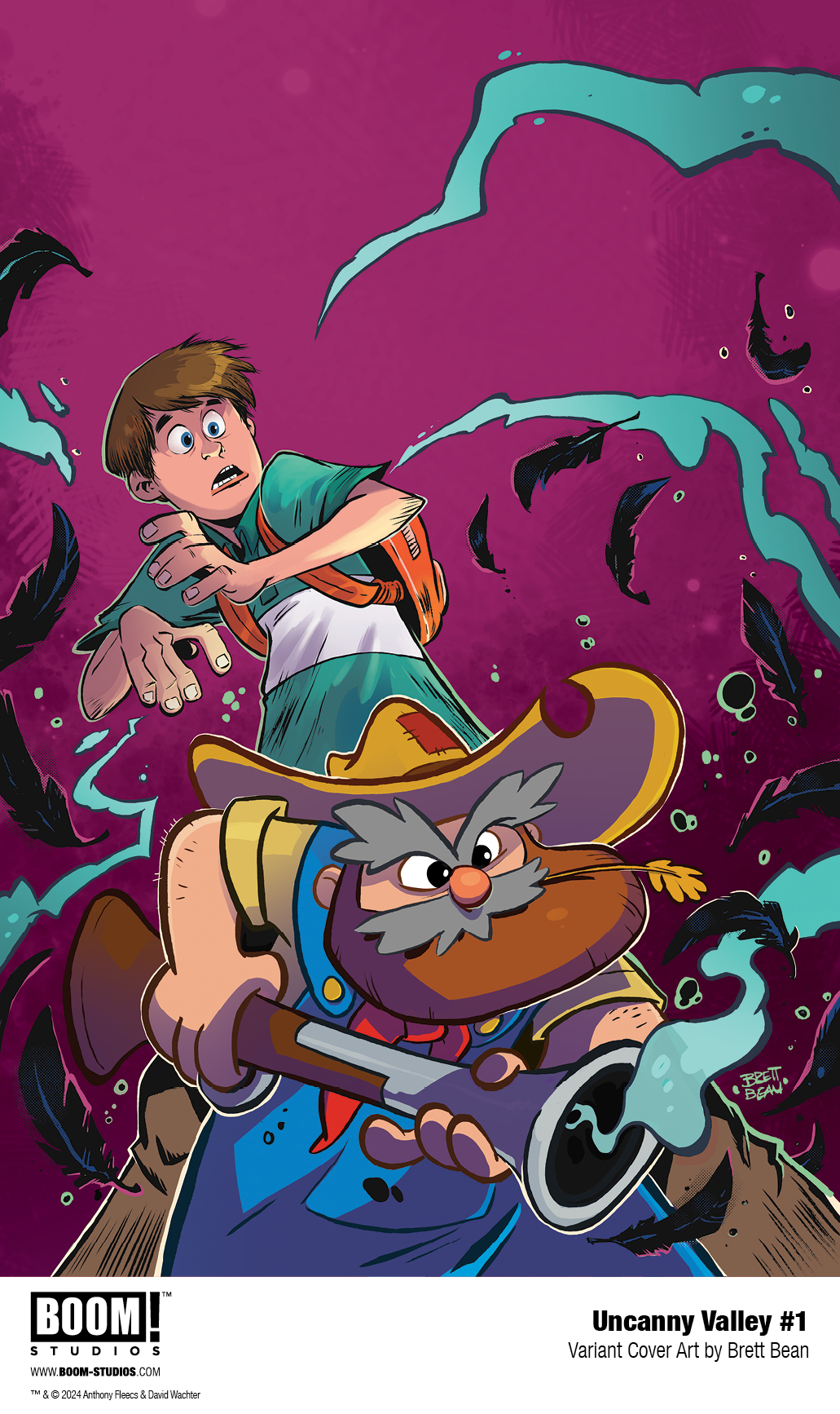 “Uncanny Valley is a book that I’ve wanted to make for years. I’m so excited to be making it with the impossibly talented Dave Wachter and with BOOM! Studios,” said writer Tony Fleecs. “It’s a big huge story set in two giant worlds with all sorts of magic and mystery and robots and skeletons but it’s centered on this little tiny family. Those are my favorite kinds of stories.”