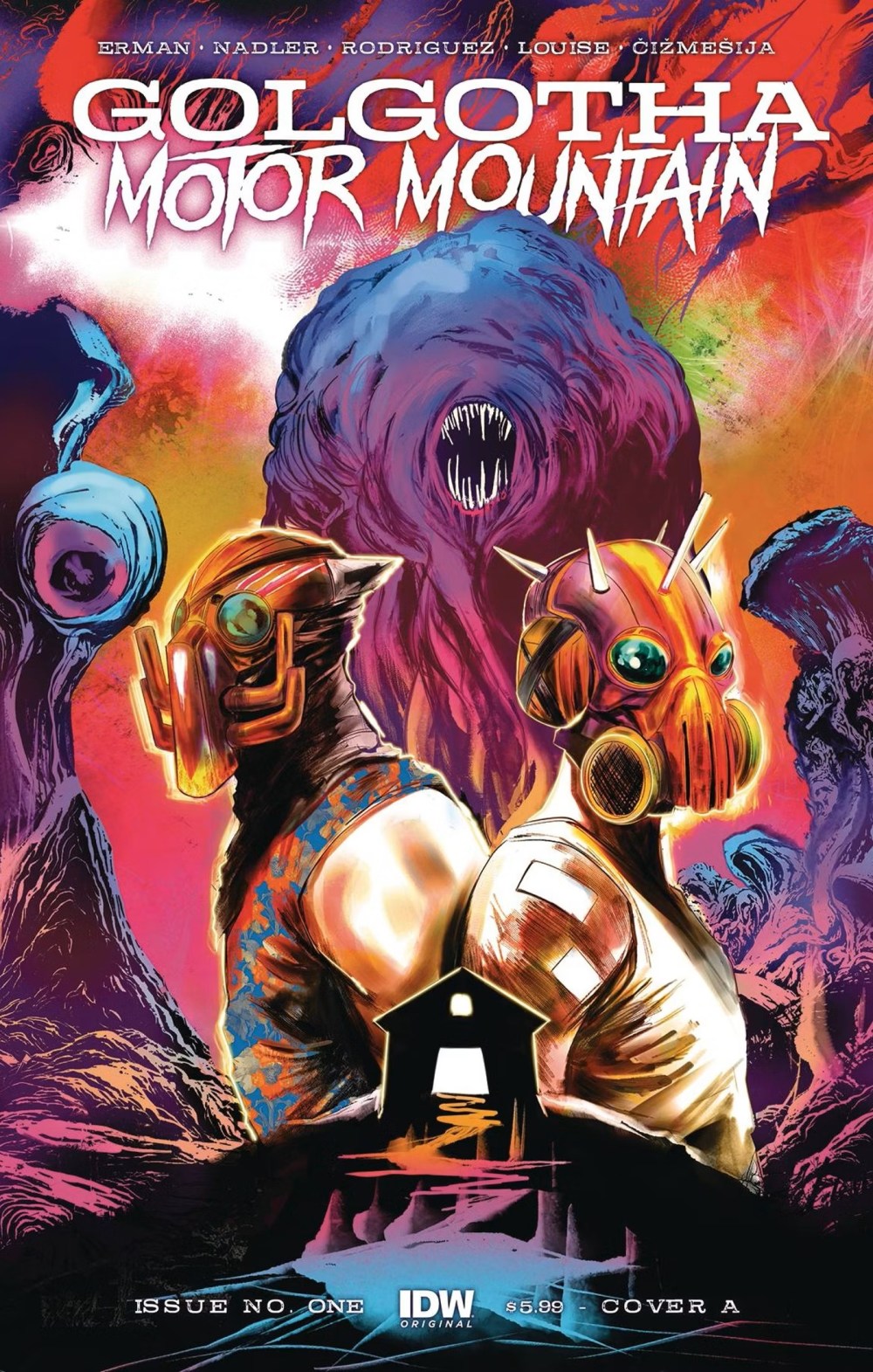 On sale this March from IDW Publishing’s creator-owned “IDW Original” imprint, Golgotha Motor Mountain sees writers Lonnie Nadler and Matthew Erman teaming up with artist Robbi Rodriguez for a wild tale of drugs, mutants and alien space rocks.