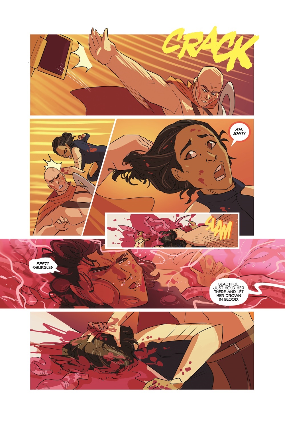 The detective noir part of the story twists and turns impressively throughout the 170-plus pages, forcing Noelani and Isadora to confront their past and the ramifications of the love affair between them that almost split the entire kingdom in half, all while scrambling down a rabbit hole of witnesses, clues and unexpected diversions. We get to find out more about the world Noelani left behind, the brutal religious regime that raised her, and the malevolent threat behind the princesses disappearance.