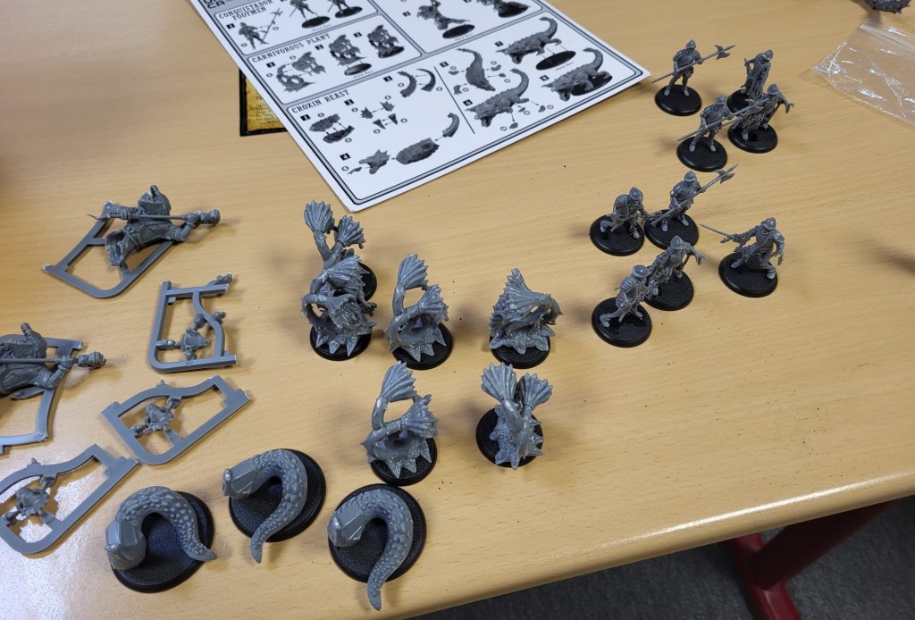 It’s creepy and atmospheric, brought to life (or back to life) with fantastic hard plastic minis – a far cry from the original rubbery red plastic or questionable resin of the OG Kickstarter. The star of the show is the XL Croxin beast, a massive crocodyloid, but whether it’s the heroes (Duelist, El Capitan, Explorer, Soldier) and their henchmen (Conquistador Footmen), the Drowned dead or the various monstrous plants and serpentmen, the quality is superb. If I have a niggle, it’s that the Serpentmen minis are the same as the previous sculpts released, but this is a minor one as I don’t know anyone who plays this that doesn’t always want extra snakies. I have even added in Reaper minis to expand my draconic hordes! You also get many, many tokens, which are (fortunately) all distinct and different, and several decks of cards, all clearly marked. The box includes a pre-moulded organiser which will hold this and some additional expansion content, though if you’re an experienced Brimstone player you’ll know that this can rapidly get out of hand (and, indeed, box).
