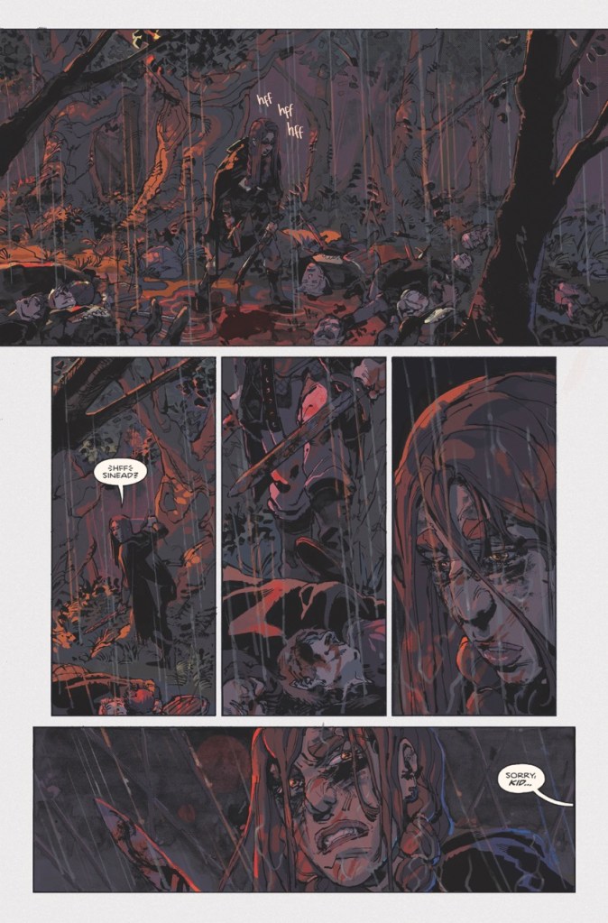 Speaking of Ulloa, he – alongside colourist Macro Rudy – does a fantastic job of making Carraig an Bhun as immersive as it is. And while there isn’t much in the way of action, or indeed even tension outside of the opening and final pages of this issue, this is still very much book that keeps the pages turning from start to finish, packed with all the expressive characters, bustling marketplaces and rowdy taverns you could hope for. There’s also something unmistakably Irish about the settings, dialogue and overall feel of the story (not to mention the name the protagonist and the town where it’s set), which actually makes a lot of sense given the nationality of its writer.