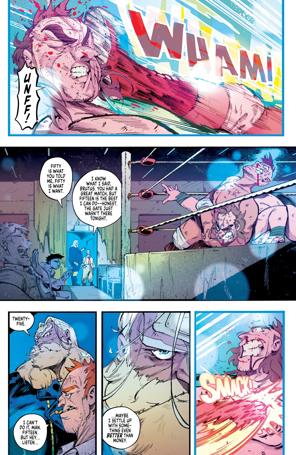Over the course of the opening chapter, we get to learn a little more about KPCW, the Castro’s promotion, and the various complicated interpersonal relationships between the Castro family members and the rest of the roster. The “crime” part of the story comes a little later, but in the interests of avoiding spoilers I’m going to skip over the specifics for the time being. However, one thing that’s clear from the opening page is that writer McCormack clearly has a lot of affection for the glamour of pro-wrestling, as well as a firm understanding of its grimy, seedy, “carny” underbelly.