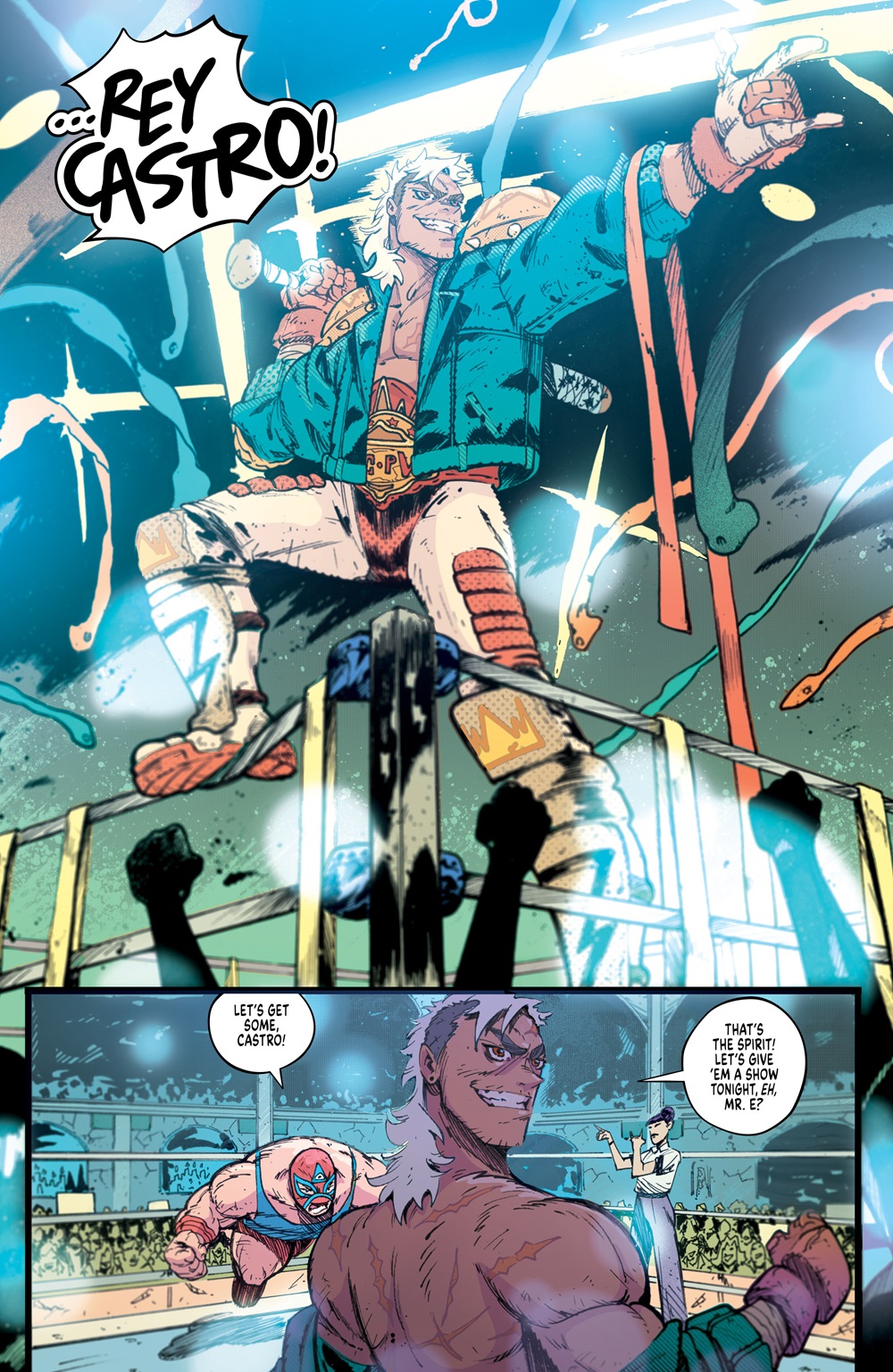 Blending the worlds of professional wrestling and crime drama, Hard Style Juice! from Clay McCormack and Ricardo López-Ortiz goes on sale today with a strong first issue that introduces us to the Castro wrestling (and possibly crime) family. “King” Castro is the booker and owner, his son Rey is the promotion’s biggest star, and his daughter Ramonita is torn between her dreams of going to business school and following her older brother into the family business.