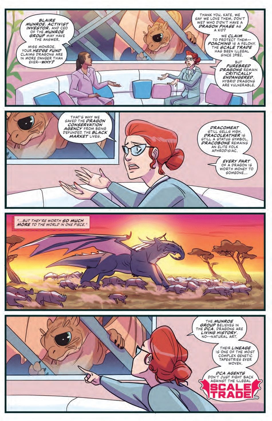Rounding out the impressive launch slate of titles from Magma Comix, Steve Orlando and Megan Huang’s The Scale Trade is on sale this week, delivering a surprisingly nuanced fantasy-meets-reality story set in a world where dragons are very much real. However, in this particular version of the world, dragons not only exist but are an endangered and highly sought-after species, and it’s up to the Dragon Conversation Agency (DCA) to police the “Scale Trade” which sees these majestic creatures being picked apart and sold on the black market.
