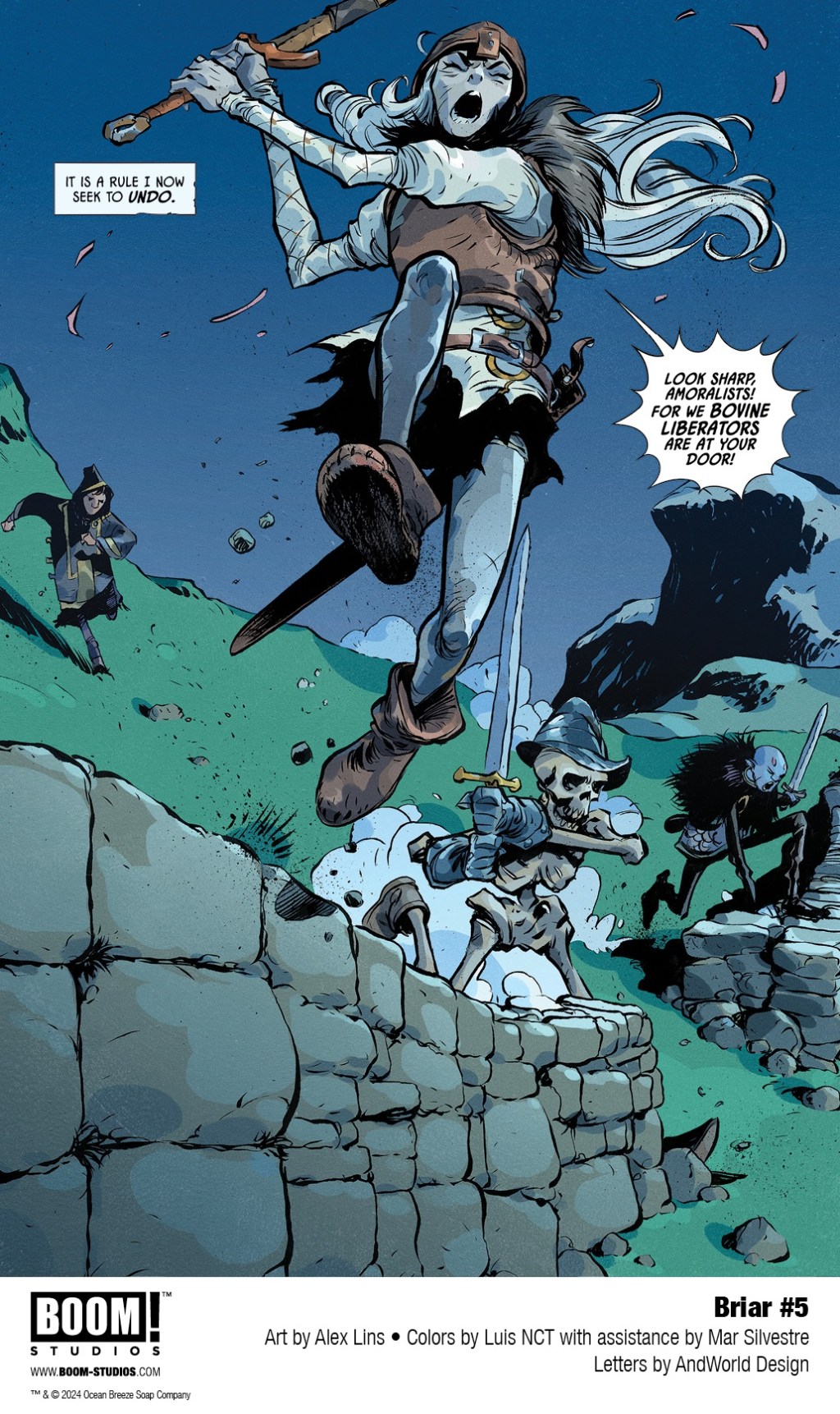 After what feels like an eternity (but is actually only a little over a year), BOOM! Studios’ Briar is back this week with a brand new story arc. Eisner Award-nominated writer Christopher Cantwell is joined by artist Alex Lins this time around, replacing Germán García, but I’m happy to report that the latest issue features the same blend of violence, profanity and dark fantasy that catapulted the series firmly into our Best of 2022 list.