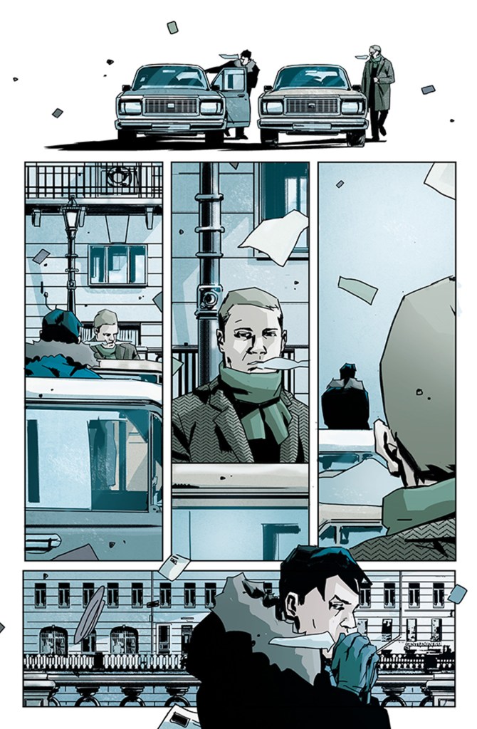 Fuso is the perfect artistic choice to bring a gritty crime tale like this to the page, and his deceptively detailed style works wonders in bringing the cold streets of Russia to the life – not to mention the fatigued, worn down and slightly disillusioned cast of characters we meet in this first issue. Colourist Emilio Lecce also does a great job of capturing the freezing bleakness of Leningrad in the winter, using a muted palette of pale blues for the exterior scenes and a soft, slightly warmer brown for those set inside.