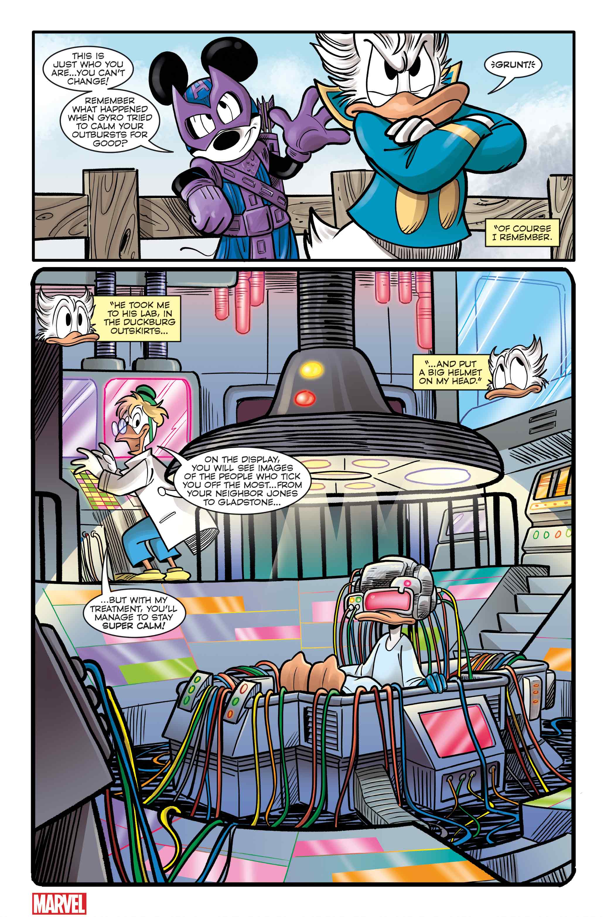 Travel to the near future where chaos rules as Pete-Skull transforms Duckburg into a super-hero-less wasteland. Only Old Donald Duck can turn the tide, but he’s given up his battling days and prefers naps and his grandma’s apple pie over fighting villains. But when Mickey-Hawkeye comes knocking at the door with Goofy-Hulk at his side, Donald-Wolverine has to make a choice! Will a trip down memory lane change his mind to save the world? Or will the lure of the backyard hammock and a long nap keep him from popping his claws one last time?