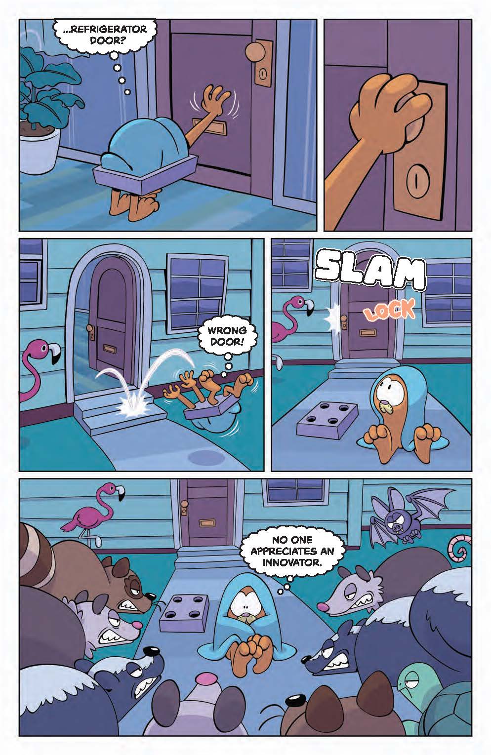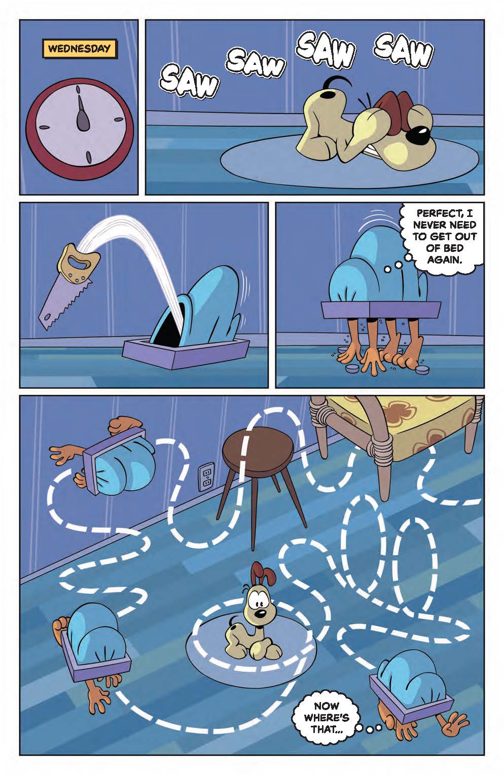 The second story, “Jon Minus Garfield” from the always sure-handed Sarah Graley, is a bit of a head-scratcher. Firstly, as the name might suggest, it doesn’t actually feature Garfield in it – a questionable choice at best – and instead features Jon dealing with the mysterious disappearance of his feline companion by visiting some of his favourite eating establishments and picking up some of his favourite foods. And secondly, it seems to exist solely as a prologue of sorts to the aforementioned movie, with a “find out what Garfield and Odie are up to in The Garfield Movie” set-up. Which would be fine, except for the fact that the movie is currently no longer in theatres, which feels like a fairly significant fumble in terms of brand synergy. Graley does a good job with what she’s given, don’t get me wrong, and there’s some fun visual comedy on display here, but it all just feels a little flat and, dare I say it, pointless.