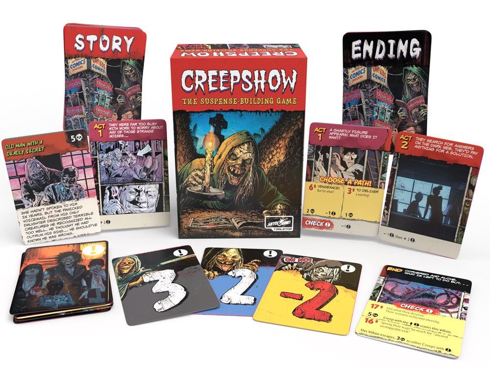 Skybound Tabletop, a division of Skybound Entertainment, have announced details of new party game Creepshow: The Suspense Building Game. The game is based on the Eisner-award nominated comic book anthology comic book series from Skybound, which was originally inspired by Greg Nicotero’s hit Shudder TV series produced and licensed by Cartel Entertainment.