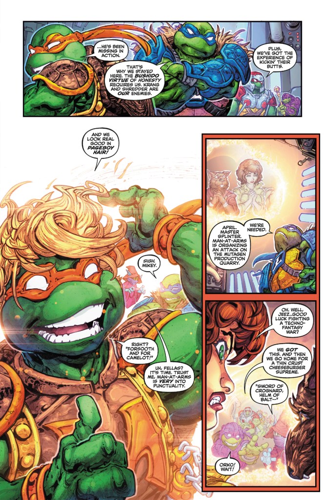As always, Williams absolutely flourishes in these type of settings, dropping in character-crammed splash page after splash page, and bringing all manner of TMNT, MOTU and Turtles of Grayskull goodness to the page with his usual flair. While some of the designs are admittedly a little ‘out there’, the vast majority of the Turtles of Grayskull toy line has been absolutely brilliant from a visual standpoint, and whether it’s Donatello wearing Man-at Arms’ armour, Trap Jaw merged with Baxter Stockman’s Mousers, or Mikey sporting a ludicrous head of He-Man style hair, there’s a heck of lot to like here.