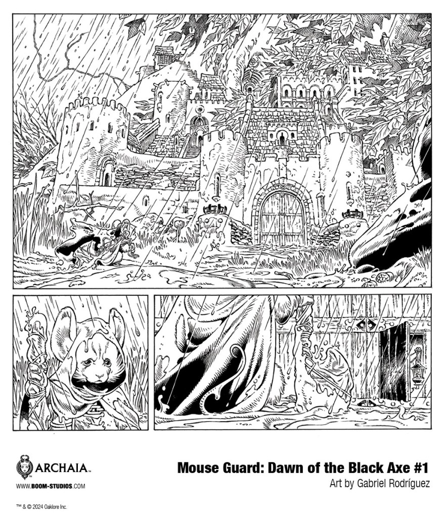 “I’ve been a fan of David Petersen’s work since the first time I saw a volume of his astonishing Mouse Guard books. We became friends as soon as we met,” added Rodríguez. “Almost a decade ago we started daydreaming about working together on the story of the first wielder of the mythical Black Axe. That dream finally came true, and I’m humbled, grateful and excited to share it with the faithful legion of Mouse Guard readers.”