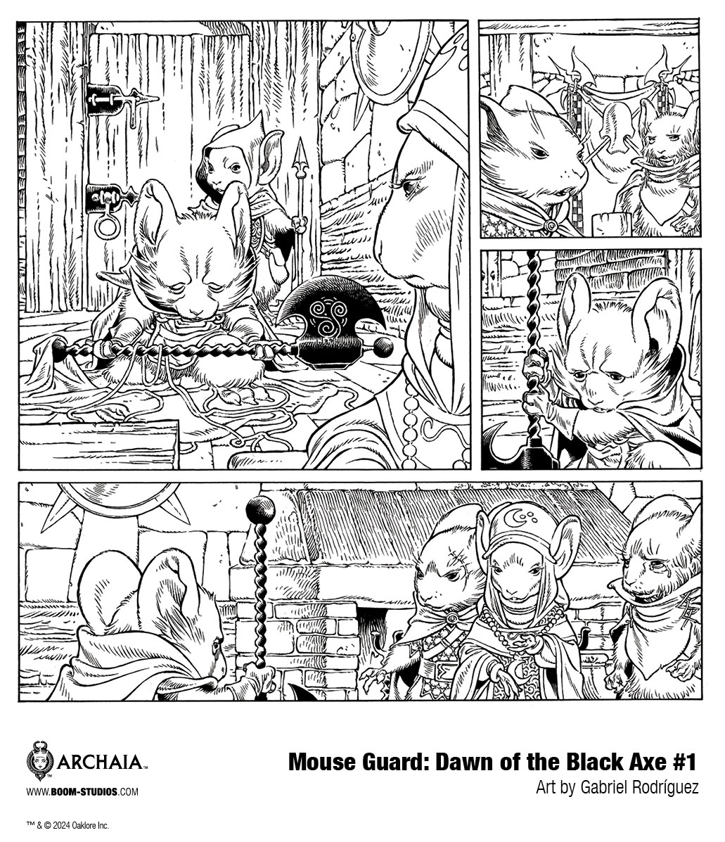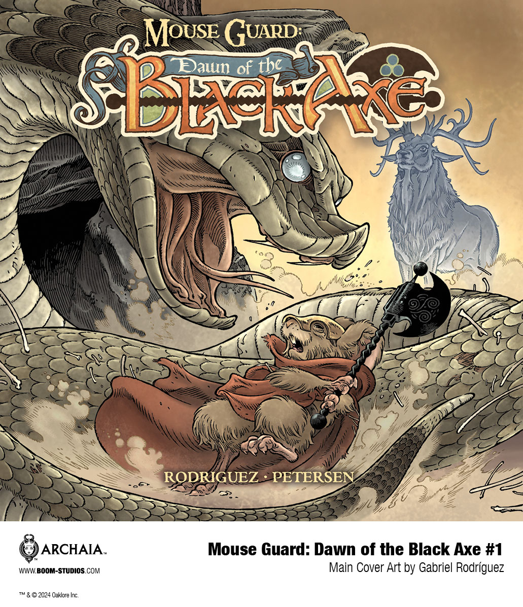 “I’ve been a fan of David Petersen’s work since the first time I saw a volume of his astonishing Mouse Guard books. We became friends as soon as we met,” added Rodríguez. “Almost a decade ago we started daydreaming about working together on the story of the first wielder of the mythical Black Axe. That dream finally came true, and I’m humbled, grateful and excited to share it with the faithful legion of Mouse Guard readers.”