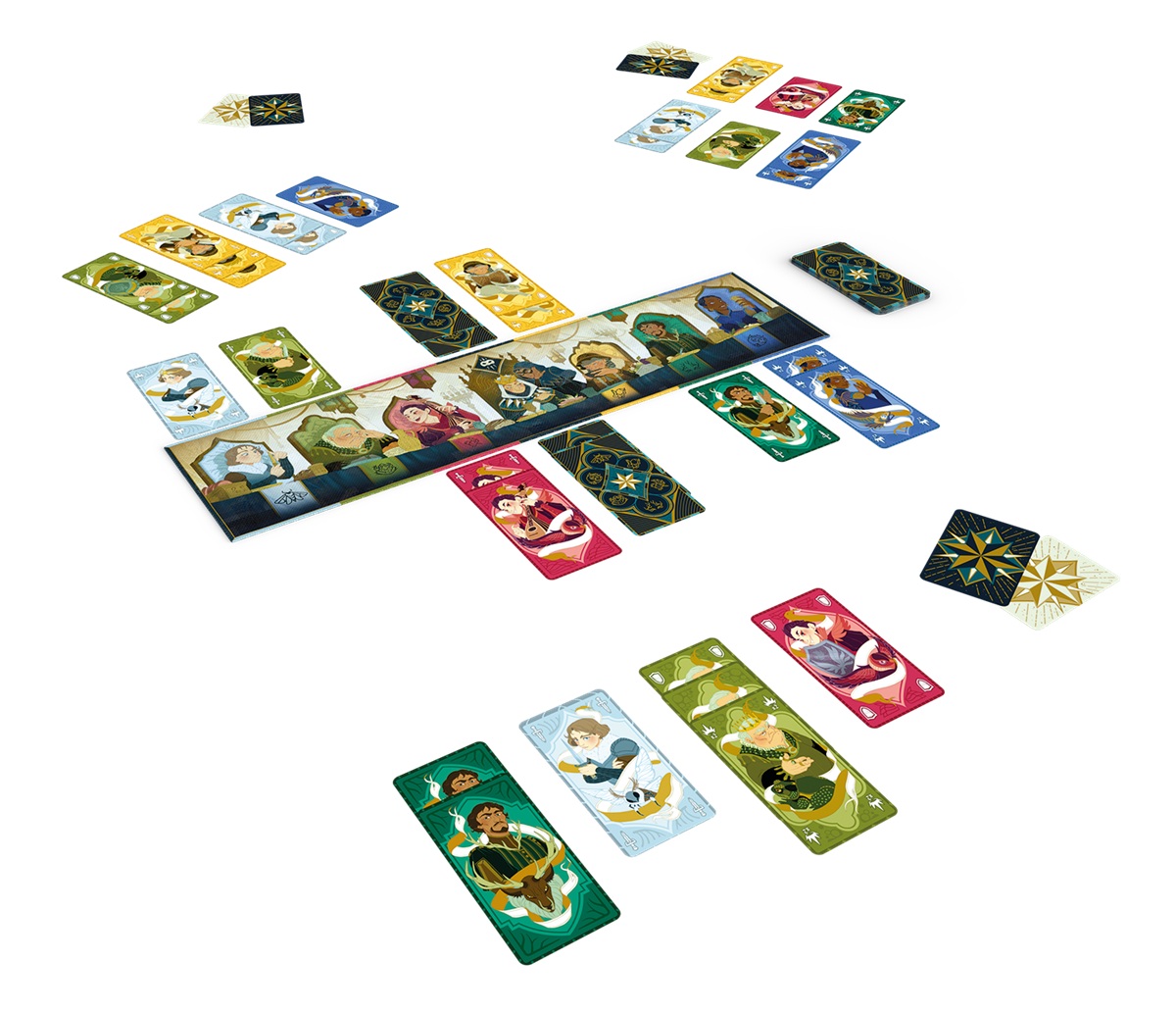 Now it can be a challenge to find something portable and satisfying for the more dedicated gamer. Whilst Courtisans isn’t heavy per se, it is utterly ruthless and cut-throat, as the different family suits vie for a seat at the Queen’s table. Each turn you must play 3 cards: 1 to yourself, 1 to an opponent, and 1 either above or below the table; at the end, the value of all the cards is either added (based on the number of a suit above) or subtracted (based on those below). However, different family members can do different things – Assassins strike to remove a card where they’re played, Spies are played facedown, Guards are safe from removal, and so on – and each player will also have objectives they are secretly working towards (for example, scoring for disgraced rather than honoured families). The trick, of course, is to do enough to win without revealing your strategy, making this a savage little game indeed. With its beautiful card art, elegant cloth table-runner board, and slick gameplay, this is an absolute winner!