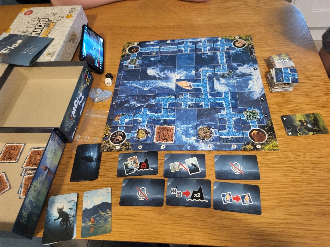 Inspired by the gorgeous, Oscar-winning animation, FLOW is a co-operative tile placement game for 1-4 that can be played incredibly quickly by anyone 8+ (or probably even younger). You aim to get your four animals from the corners to the boat at the centre, laying tiles to makes paths (I was immediately reminded of Pipedreams!), constantly battling against the clock (the game comes with a 1 minute QR-code timer) as your efforts get swept away. It ends up making you ultra-focused, with plenty of scalable difficulty, from extra obstacles to having to play in silence. Whilst it’s a very rapid game, there’s plenty of replayability; it’s also ideal as a warm-up or cool down from a night’s gaming.