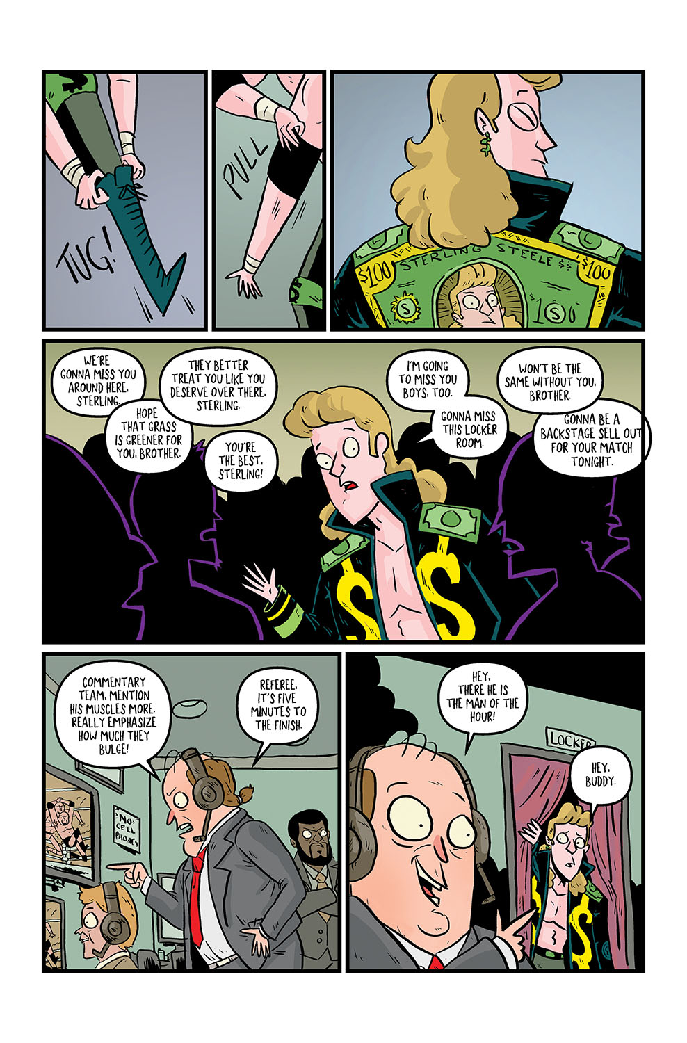 Wrestle Heist by Kyle Starks will be available at comic book shops on Wednesday, December 17th 2025, and you can feast your eyes on a sneak preview below: