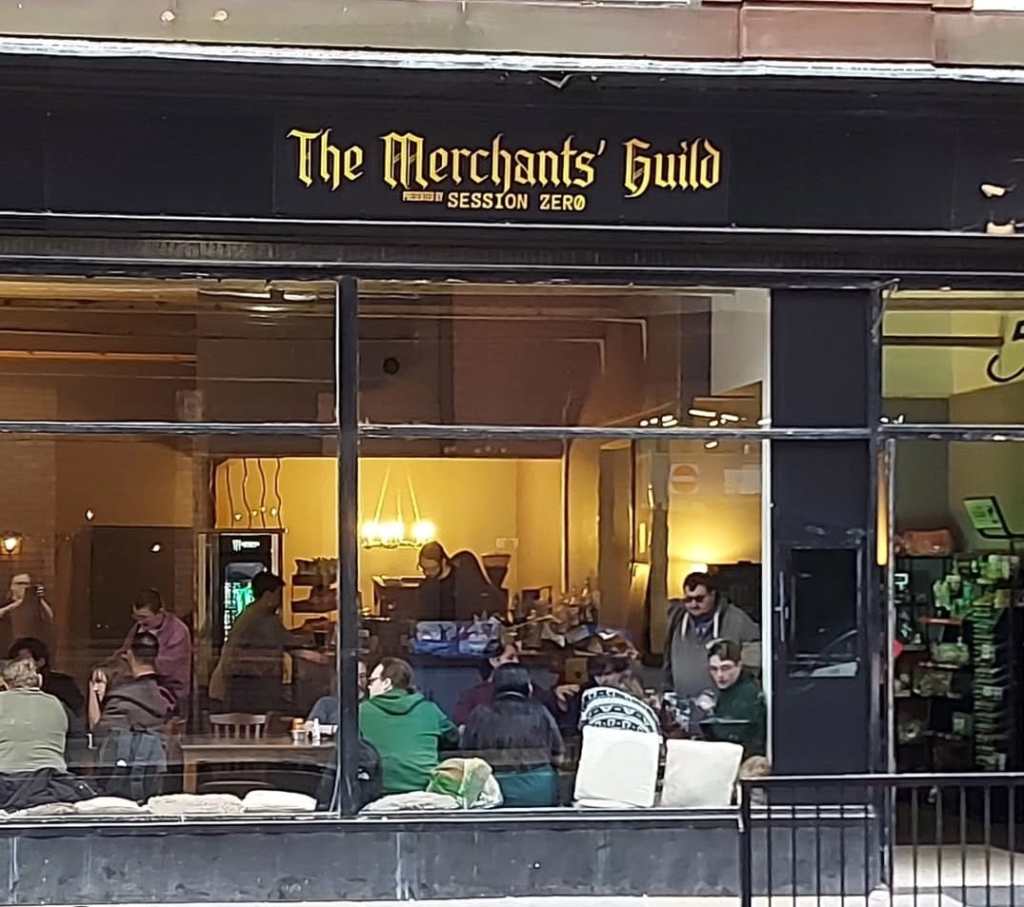 It’s more accurate, really to describe the venue as The Merchants’ Guild: Session Zero x Geekzilla – but that’s a bit of a mouthful. Session Zero will be familiar to many from their pop-up nights at IVORY on the Southside, building a buzzing scene for CCGs, including some Organised Play and great sealed events – alongside regular RPG nights. Geekzilla is a non-profit community enterprise that has been around a while, and whilst the name may not be familiar, if you’ve been involved in any way in Scotland’s vibrant Mantic Games miniature scene, or encountered the legendary Gofur, you’ve been Geekzilla’d. These combine together under the wider aegis of the Guild venue and concept.
