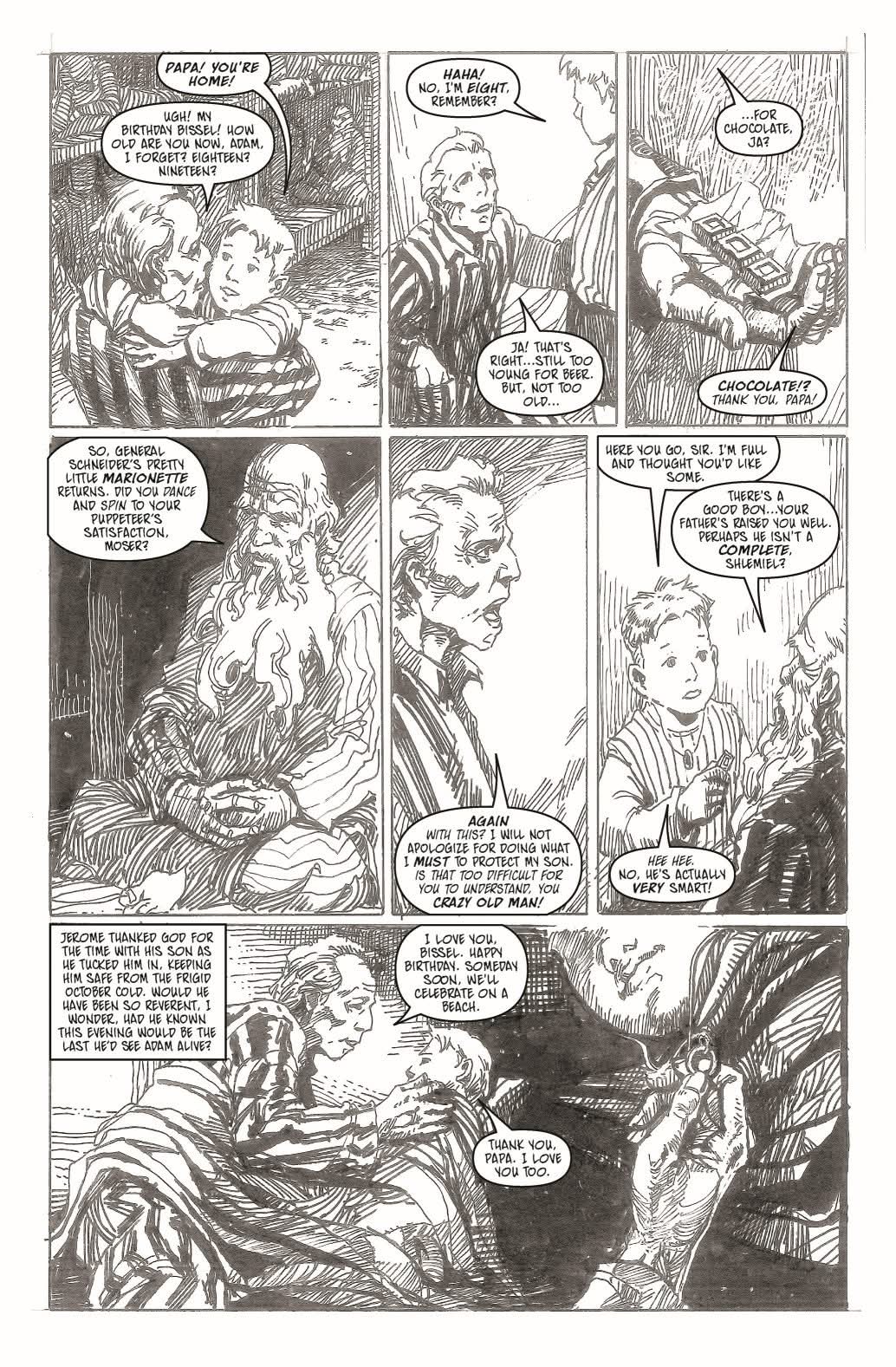 Adding an incredible amount of depth, tenderness and all-too understandable savagery to these enthrallingly-penned proceedings are the incredibly well-detailed layouts of Vu Danh. The decision to simply utilise the Vietnamese concept artist’s black and white pencils really adds to the sombre, almost hopeless existence experienced by Abrahams and his fellow prisoners. It also allows the audience to witness the tragic, physical frailty of the death camp’s inmates, as well as later emphasise the sheer hopelessness of their Nazi captors when the tables are well and truly turned against the vile regime.