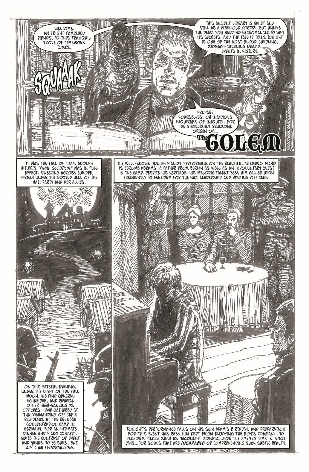 Offered by Mutant Farm Comics as an add-on during the June 2025 kickstarter for issue two of ‘Unholy Nightmare’, Dolan Waddick’s storyline for “The Golem” must surely have delighted any of the campaign’s backers who added it to their pledge. Indeed, the comic book creator’s take on so iconic a mythical monster from Jewish folklore is incredibly emotional, and should readily tug upon the heartstrings of even the most cold-blooded of readers; “I love you, Bissel. Happy Birthday. Someday soon, we’ll celebrate on a beach.”